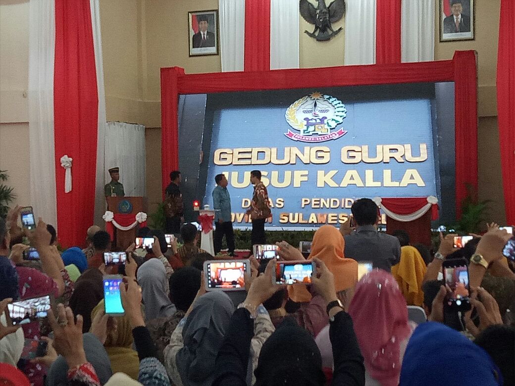 “Hadirnya beliau untuk re-charge (mengisi ulang) energi Sulawesi Selatan dan pendidikan kita. Kita orang Sulsel tidak boleh tertinggal di dunia pendidikan,” kata SYL.