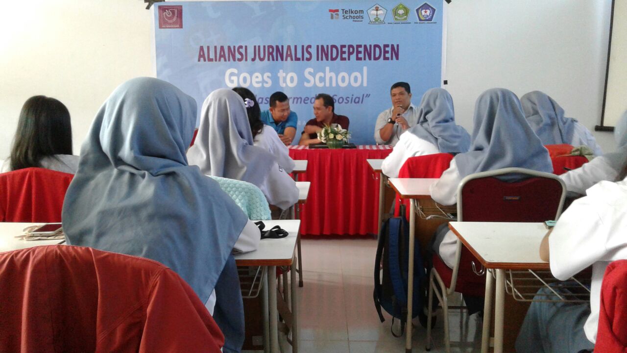 Peserta kegiatan AJI Goes to School sangat antusias mengikuti kegiatan literasi yang mengangkat tema ‘Cerdas Bermedia Sosial