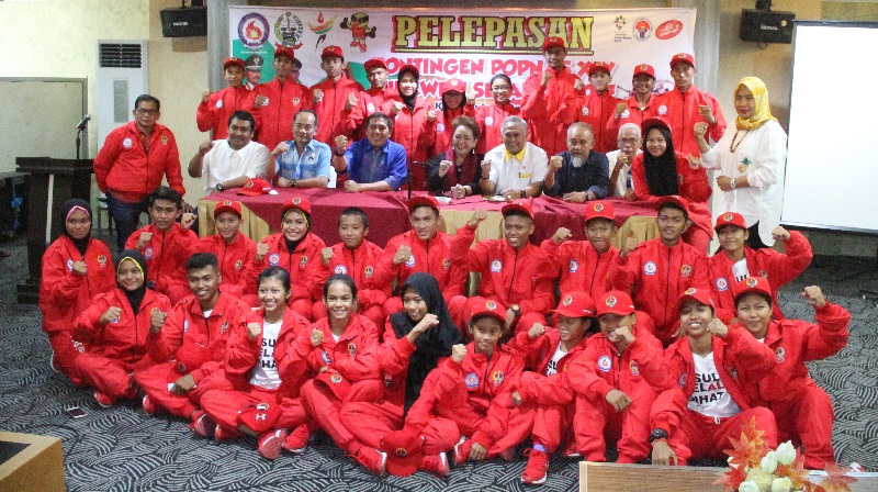 INFOSULSEL.COM, MAKASSAR—Gubernur Sulawesi Selatan diwakili Kepala Dinas Kepemudaan dan Olahraga (Dispora) Provinsi Sulsel, Sri Edang Sukarsih melepas 177 atlet yang akan mengikuti Pekan Olahraga Pelajar Nasional (Popnas) XIV di Semarang, Jawa Tengah, 10 -21 September 2017, Sabtu (9/9/2017) di Hotel Lynt.