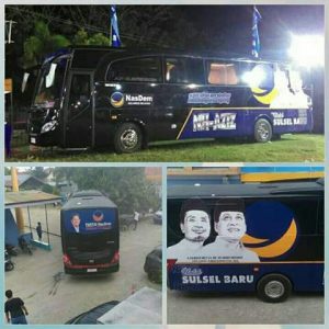 “Nasdem memiliki fasilitas kampanye yang cukup modern. Selain strategi politik, kendaraan seperti bus kampanye juga merupakan salah satu bukti kesiapan Nasdem di dalam memenangkan NH-Aziz di pilgub mendatang,”ujar Muhammad Natsir, saat di konfirmasi INFOSULSEL.COM, Sabtu (23/9/2017).