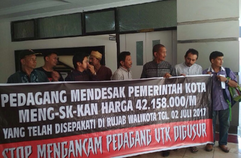 Desakan para pedagang ini karena pihak PT. Melati Tungal Inti Raya (MTIR) selaku pengembang menaikkan harga di atas harga yang telah disepakati yakni Rp 65 juta sampai Rp 115 juta per meter.
