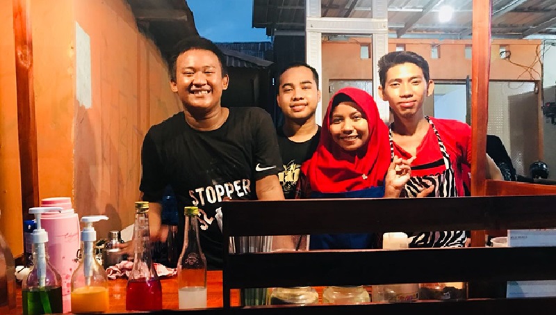 Nusran (20), Nur Ne (21) dan Hengki (26) adalah rekan Suci yang membantu membuka usaha kedai minuman yang diberi nama Teletubbies Drink.
