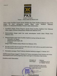 INFOSULSEL.COM, MAKASSAR– Partai Keadilan Sejahtera (PKS) akhirnya memantapkan pilihannya kepada Walikota Makassar, Moh Ramdhan ‘Danny’ Pomanto untuk Pilkada Makassar 2018.