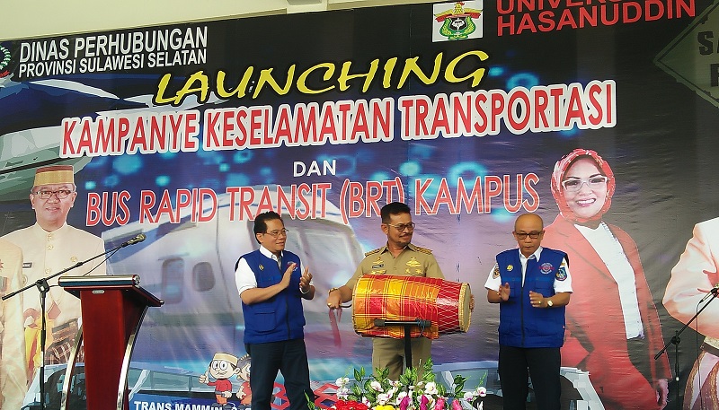 “Kampanye keselamatan transportasi ini dilakukan di 1.000 titik di 24 kabupaten/kota, utamanya di ruas jalan yang rawan macet dan kecelakaan. Kami melibatkan pelaku transportasi, pengusaha transportasi, dan mahasiswa serta pelajar,” kata Ilyas, di sela-sela Launching Gerakan 1.000 Kampanye Keselamatan Transportasi dan Bus Rapid Trans (BRT) Kampus, di Kampus Teknik Unhas, Kabupaten Gowa, Senin (30/10).