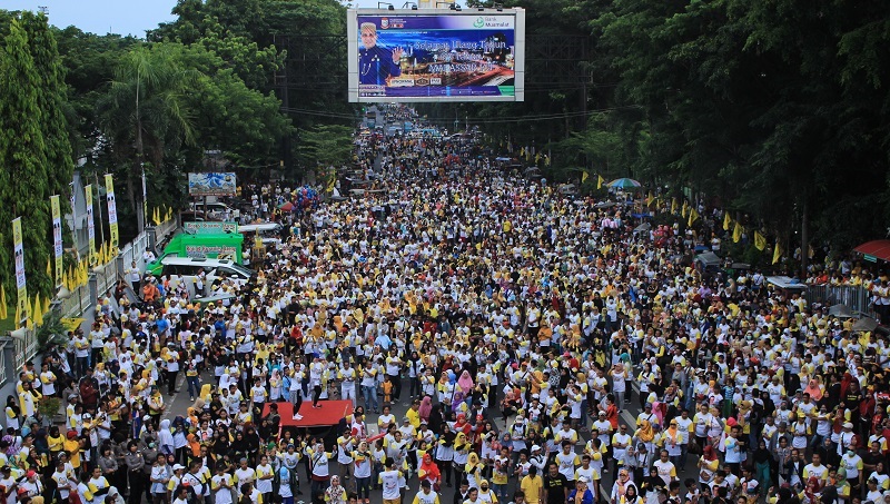 INFOSULSEL.COM,MAKASAR – Ratusan ribu masyarakat tumpah di jantung kota Makassar. Mereka hadir untuk memeriahkan Jalan Sehat Golkar berlabel JAGO Jilid II, Minggu, (19/11/2017).