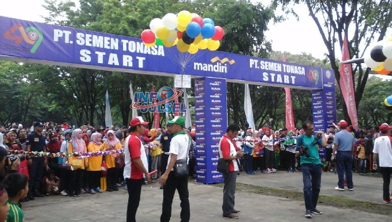 Jalan sehat yang diikuti ribuan peserta dari Maros, Pangkep dan Barru ini mengambil star dan kembali finis di kawasan Kantor Pusat Semen Tonasa yang terletak di Desa Biring Ere, Kecamatan Bungoro, Pangkep.