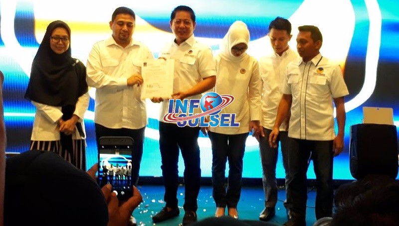 INFOSULSEL.COM, MAKASSAR— Ketua DPD Partai Nasdem, Rusdi Masse baru saja menyerahkan Surat Keterangan (SK) rekomendasi B1 KWK kepada pasangan Munafri Arifuddin-Rahmatika Dewi untuk di Hotel Imperial Aryaduta, Jumat (8/12/2017).