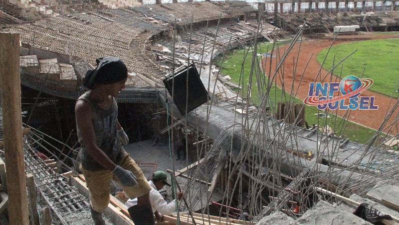 INFOSULSEL.COM, MAKASSAR – Stadion Barombong saat ini sedang dalam tahap penyelesaian. Diharapkan pengerjaannya rampung akhir tahun ini. Dalam tahap pengerjaan, Sabtu (2/12/2017), sore dua segmen yang sedang dalam proses pengecoran roboh. Posisinya di bagian tribun selatan.