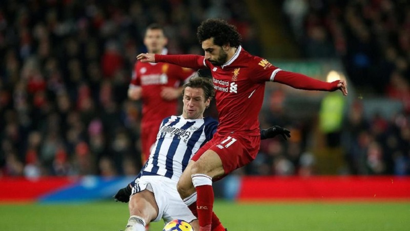 Sang topskor Mohamed Salah memberi servis matang pada Roberto Firmino. Namun tendangannya melenceng tipis di atas gawang WBA yang dijaga Foster.