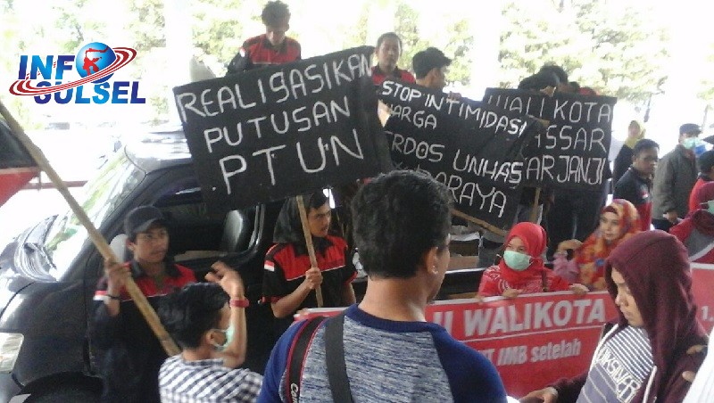 INFOSULSEL.COM, MAKASSAR– Forum Kompleks Unhas Baraya (FKUB) dan gerakan aksi mahasiswa (GAM) melakukan unjuk rasa terkait pembangunan Yayasan Amal Jariyah di Jalan Sunu Makassar, di kantor Dewan Perwakilan Rakyat Daerah (DPRD) Kota Makassar, Senin (11/12/2017).