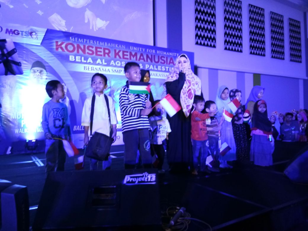 INFOSULSEL.COM, MAKASSAR— Konser peduli untuk rakyat Palestina, yang Digelar hasil kerjasama SMP 23 dan Social Service Centre (SSC) Indonesia, di Hotel Maxone jalan Taman Makam Pahlawan, Makassar, Sabtu (27/1/2018), menghadirkan Bintang tamu Melly Goeslaw.