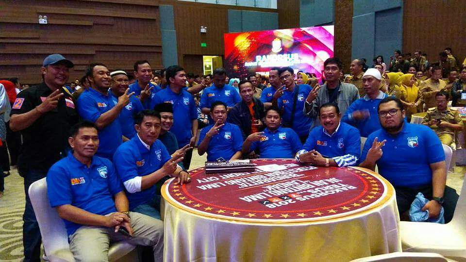 Dikomandoi Ketua DPC Demokrat Makassar, Ady Rasyid Ali (ARA) puluhan relawan Relawan Rajawali hadir memberi selamat usai gelaran Rapat Koordinasi Khusus (Rakorsus) di hotel For Points by Sheraton, Senin (29/1/2018).
