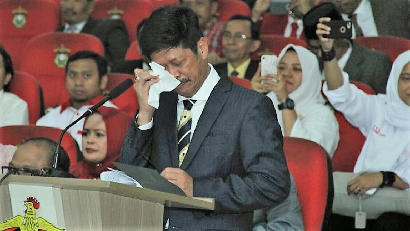 INFOSULSEL.COM, MAKASSAR- Ichsan Yasin Limpo (IYL) tak kuasa menahan haru saat dipersilakan memberi sambutan dan kesannya usai dikukuhkan sebagai doktor bidang hukum pendidikan di auditorium Amiruddin Kampus Universitas Hasanuddin (Unhas) Kamis (8/2/2018).