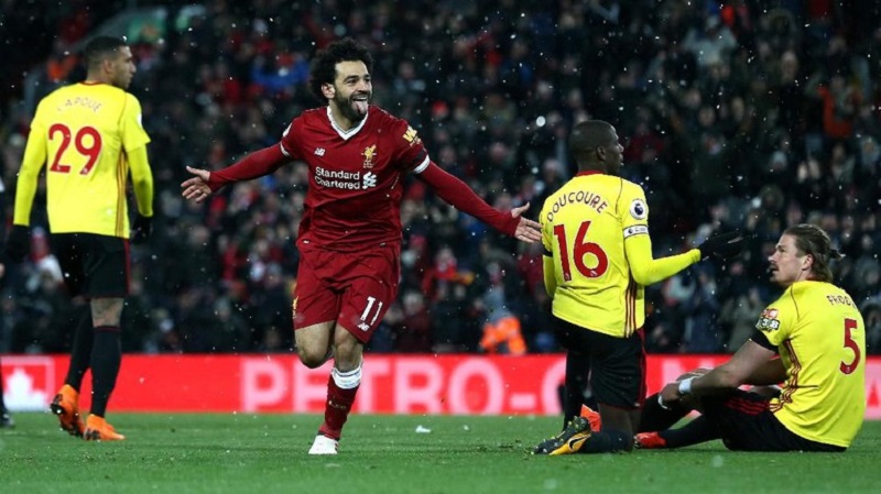 INFOSULSEL.COM, LIVERPOOL — Mohamed Salah ‘mengamuk’. Pemilik nomor 11 di Liverpool ini memborong empat gol ke gawang Watford dalam lanjutan Premier League di Anfield Stadium, Minggu (18/3/2018) dinihari WITA.