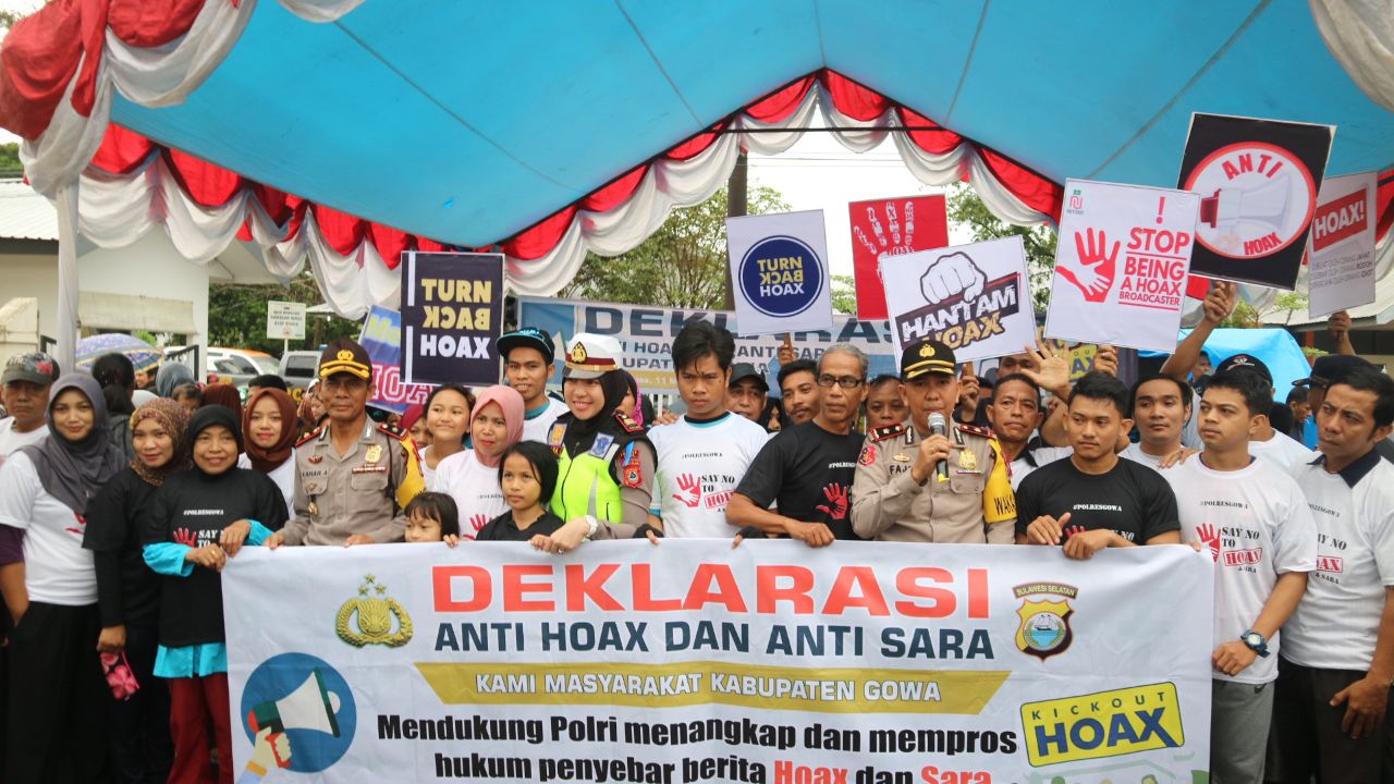 “Polres Gowa ingin memberi edukasi dan menggerakkan warga untuk waspada info hoax, provokasi isu SARA dan hate Speech atau ujaran kebencian sehingga warga Gowa bersatu padu melawan hoax dan provokasi tersebut,” ucap Kapolres Gowa, AKBP Shinto Silitonga