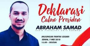 INFOSULSEL. COM, MAKASSAR– Mantan Ketua Komisi Pemberantasan Korupsi (KPK) Abraham Samad 2011-2015 akan menggelar deklarasi sebagai calon presiden (Capres) pada Pemilu 2019 di Anjungan Pantai Losari, (7/5/2018) sore.