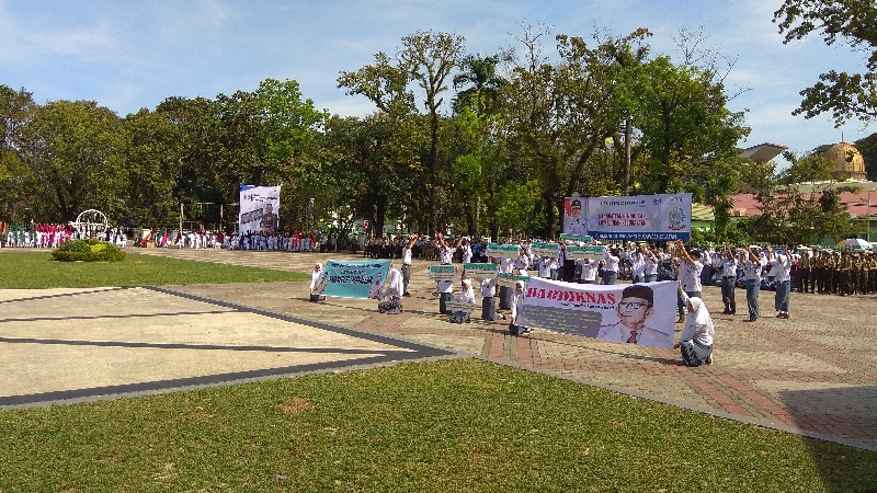 INFOSULSEL.COM, MAKASSAR — Upacara peringatan Hari Pendidikan Nasional (Hardiknas) tahun 2018 tingkat Provinsi Sulawesi Selatan, dilaksanakan di Lapangan Upacara Rujab Gubernur Sulsel, Jalan Jenderal Sudirman, Makassar, Rabu (2/5/2018).