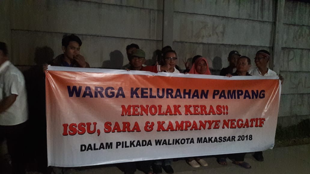 “Malam ini kami berkumpul disini menyatakan sikap menolak isu SARA yang bisa memecah belah masyarakat Kelurahan Pampang dan tidak sejalan dengan azas Bhineka Tunggal Ika. Ini berbahaya karena mengancam keutuhan NKRI dan kebersamaan yang selama ini terbangun di Makassar,” tegas Lewi Rantekala, pads Senin (28/5/18) malam.