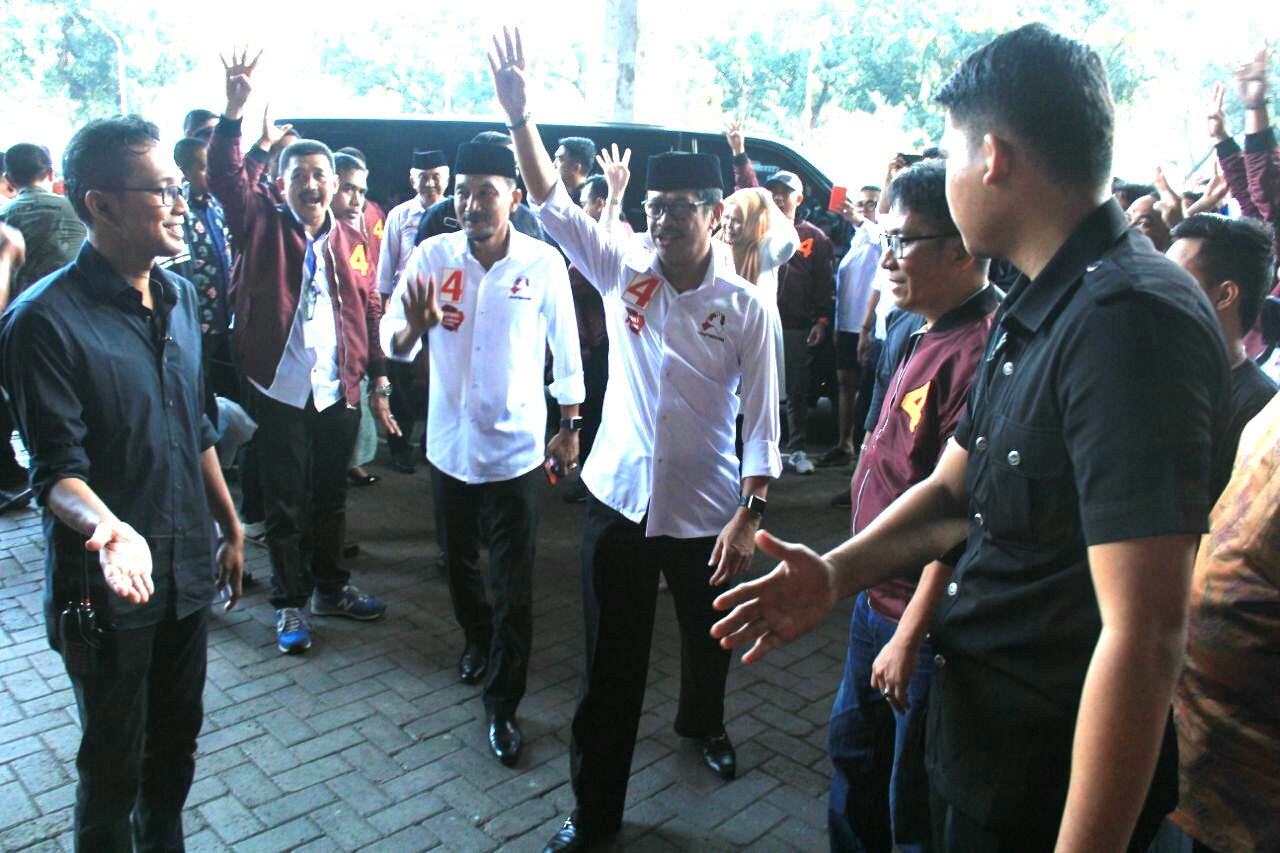 Begitu turun dari kendaraan yang ditumpanginya, IYL dan Cakka yang mengenakan kemeja putih dan kopiah langsung disambut yel-yel “rakyat bersatu tak bisa dikalahkan” oleh puluhan perwakilan Koalisi Rakyat.