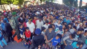 “Datangnya dari subuh pak. Ini yang ketiga kalinya saya datang, tiap tahun. Saya juga dapat uang Rp 100 ribu, anak-anak dapat 50 ribu,” aku warga Kabupaten Gowa ini.