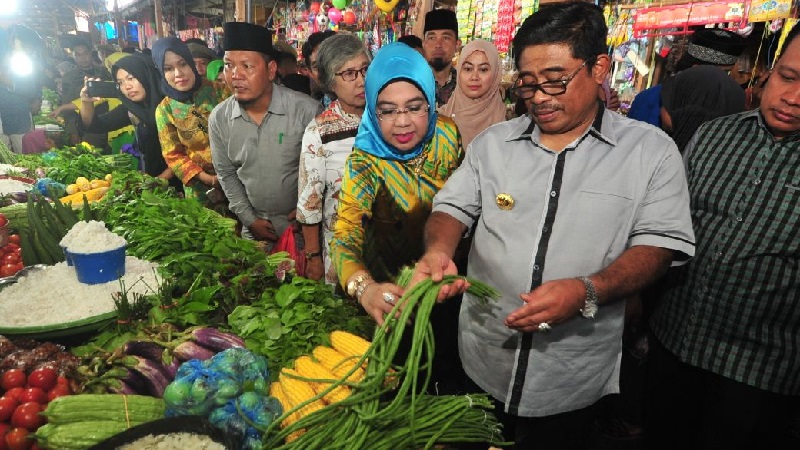 INFOSULSEL.COM, PALOPO – Guna memastikan kebutuhan pangan selama Ramadan dan jelang Idul Fitri, Penjabat Gubernur Sulawesi Selatan Soni Sumarsono melakukan kunjungan ke pasar-pasar yang ada di Sulsel, termasuk mengunjungi Pasar Niaga Palopo di Kota Palopo, Jum’at (1/6/2018).