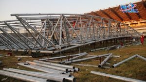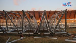 INFOSULSEL.COM,MAKASSAR – Geliat pembangunan Stadion Internasional Barombong yang dimulai sejak 2011, terus berlanjut. Hingga pertegahan Juli 2018, sudah masuk dalam tahap perampungan atap. Tahapan ini diharapkan selesai akhir November 2018.