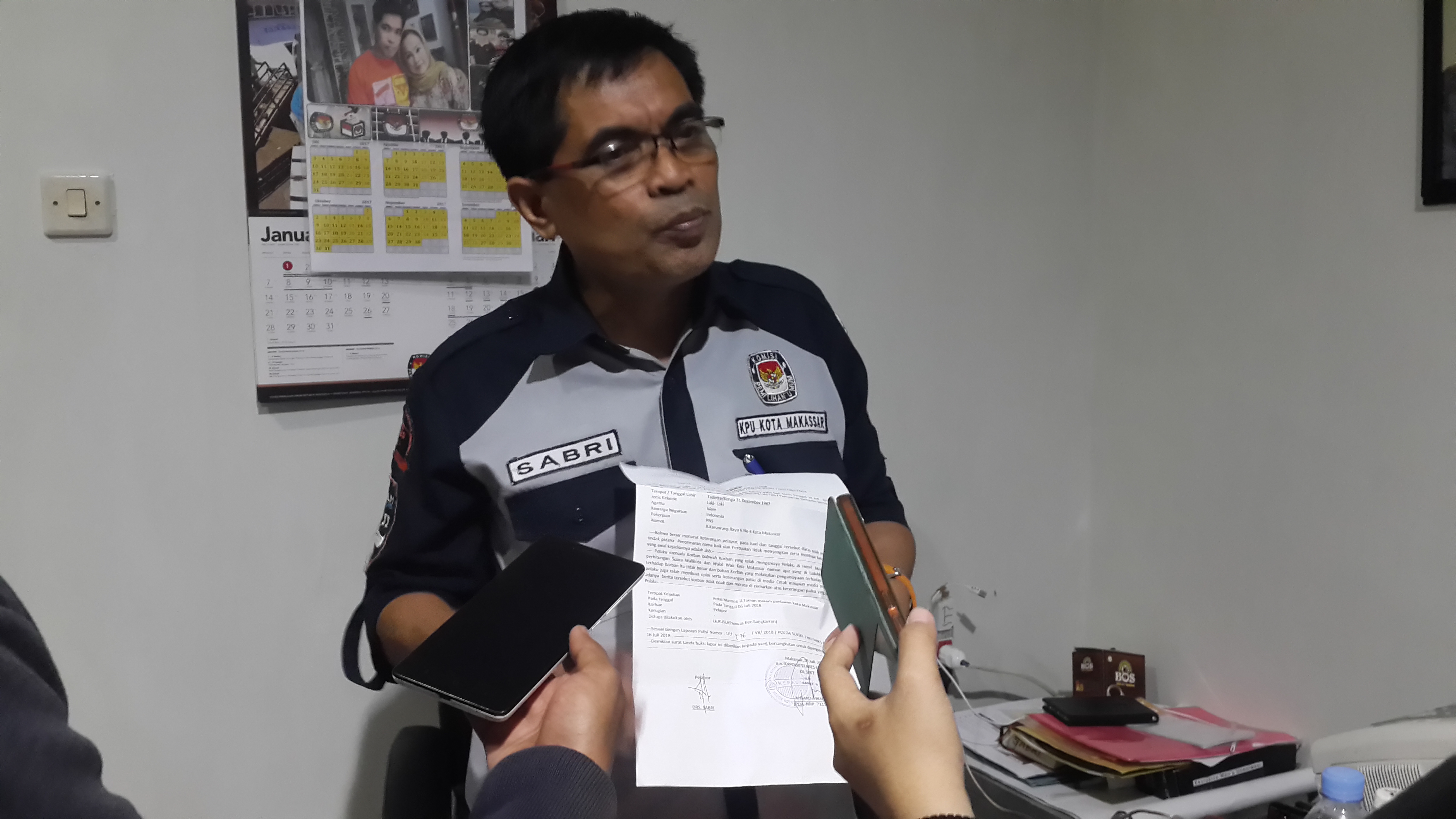 INFOSULSEL.COM, MAKASSAR— Sekretaris KPU Makassar, Sabri resmi melaporkan Panwascam Sangkarrang, Rusli ke Polrestabes Makassar.