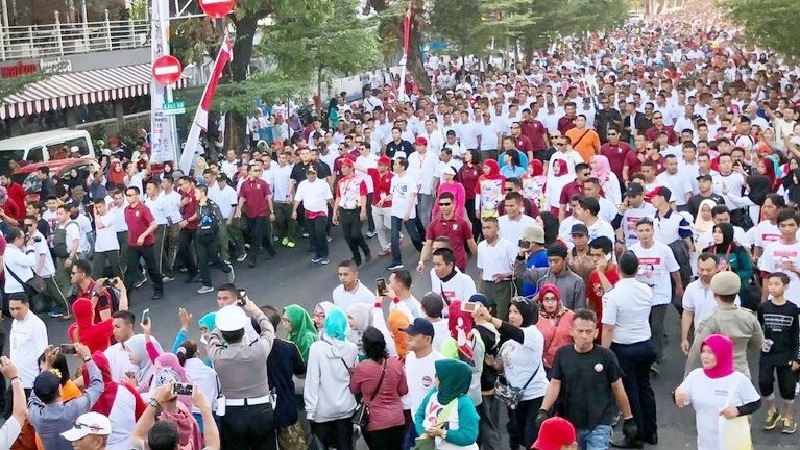 INFOSULSEL.COM,MAKASSAR – Presiden Joko Widodo dan Ibu Negara Iriana menghadiri Jalan Sehat Sahabat Rakyat Indonesia untuk Asian Games 2018 di Kota Makassar yang diikuti ratusan ribu orang, Ahad (29/7/2018).