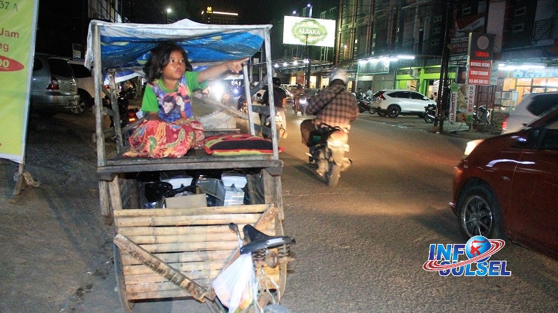 INFOSULSEL.COM,MAKASSAR — Matahari belum menampakkan sinarnya ketika Una mendorong becaknya. Ia membawa anak semata wayangnya yang baru berusia 5 tahun.