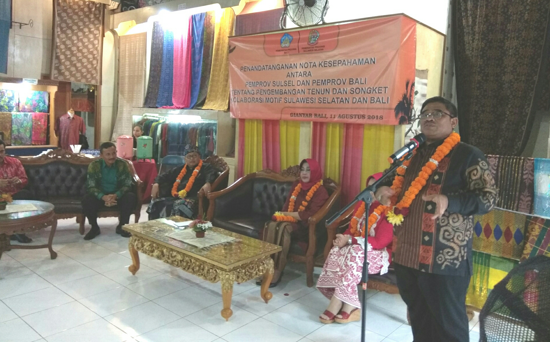 INFOSULSEL.COM,MAKASSAR- Pemerintah Provinsi Sulawesi Selatan dan dan Pemprov Bali menjalin kerjasama pengembangan Tenun dan Songket Kolaborasi Motif Sulsel dan Bali, di Lokasi Tenun Ikat Puteri Ayu, BlahBatu, Kabupaten Gianyar, Bali, pada Sabtu (11/8/2018).