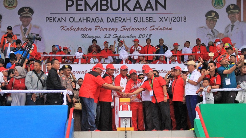 Gubernur Sulawesi Selatan (Sulsel) Nurdin Abdullah hadir membuka ajang multi event empat tahunan ini, Ahad (23/9/2018) di Stadion Bau Massepe, Kabupaten Pinrang. Bagi mantan Bupati Bantaeng dua periode ini, pelaksanaan Porda ikut menggerakkan perekonomian kabupaten berjuluk Bumi Lasinrang, ini.