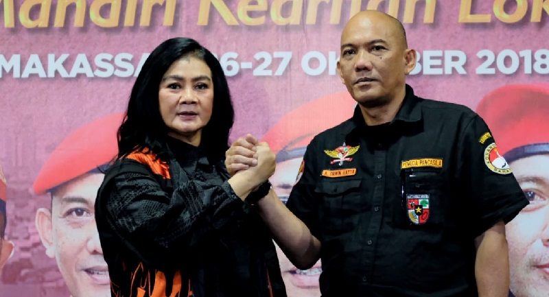 Selain Andi Erwin, juga terpilih secara aklamasi Indira Mulyasari Paramastuti sebagai Ketua Srikandi PP kota Makassar.