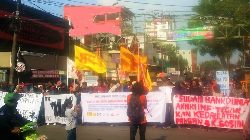 Aksi yang digelar gabungan organisasi mahasiswa di Kota Makassar ini sebagai wujud penolakan akan campur tangan IMF-WB di Indonesia.