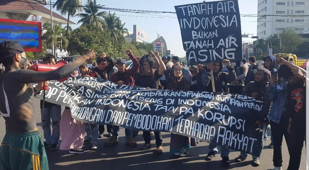 “Terbukti dengan banyaknya tenaga kerja asing yang dipekerjakan dengan menduduki posisi tenaga ahli. Padahal, masih banyak warga lokal yang harus diprioritaskan,” ujarnya saat orasi diikuti riuh massa sebut “Turunkan Jokowi-JK!”