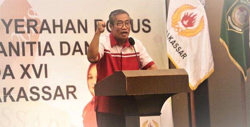 INFOSULSEL.COM,MAKASSAR — Sandeq Ballroom Hotel Claro, Ahad (11/11/2018) malam penuh sesak oleh ratusan atlet, pelatih, mekanik dan para manajer. Mereka berasal dari 35 cabang olahraga (Cabor) yang baru saja mengikuti Pekan Olahraga Daerah (Porda) XVI di Kabupaten Pinrang akhir September 2018 lalu.
