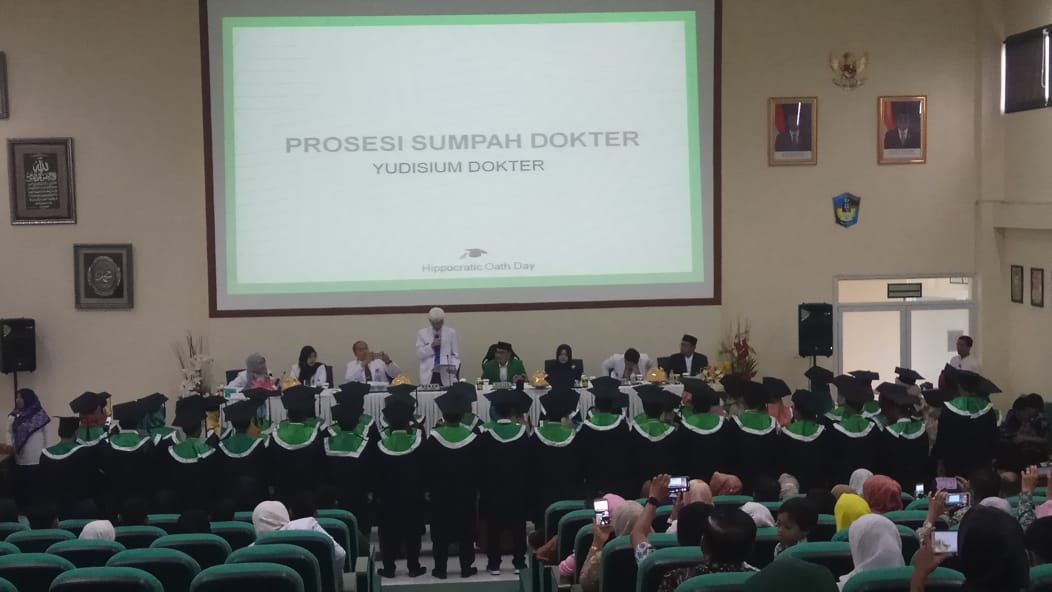 INFOSULSEL.COM, MAKASSAR – Sebanyak 56 profesi dokter Fakultas Kedokteran Universitas Muslim Indonesia (UMI) hari ini menghadiri yudisium dokter/pengambilan sumpah dokter, di Aula Teleconference Lantai 5, pada Rabu (12/12/18)