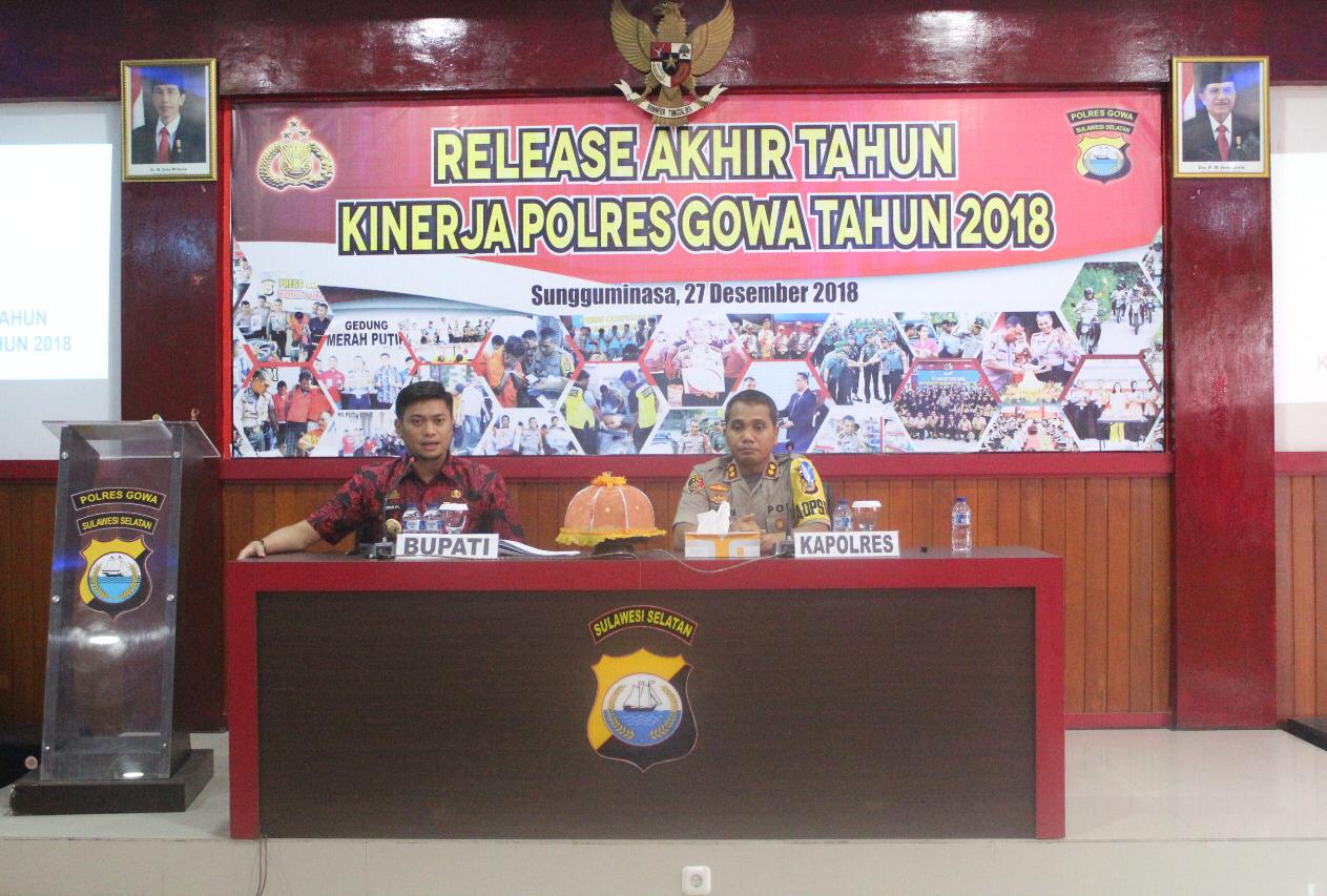 InfoSulsel.com, Gowa – Jajaran Kepolisian Resor (Polres) Gowa menggelar kegiatan Release Akhir Tahun Kinerja Polres Gowa Tahun 2018 untuk mengukur tingkat keberhasilan kinerja yang telah dilaksanakan selama setahun, Kamis (27/12/2018).