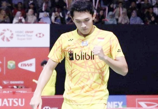 Infopertina.com – Pebulutangkis Indonesia Jonatan Christie bergembira usai kalahkan pebulutangkis China Shi Yuqi dalam babak enam belas besar Daihatsu Indonesia Masters 2019 di Istora Senayan, Jakarta, pada 24 Januari 2019 lalu. Jonatan Christie menang dengan skor 22-20 dan 21-6.