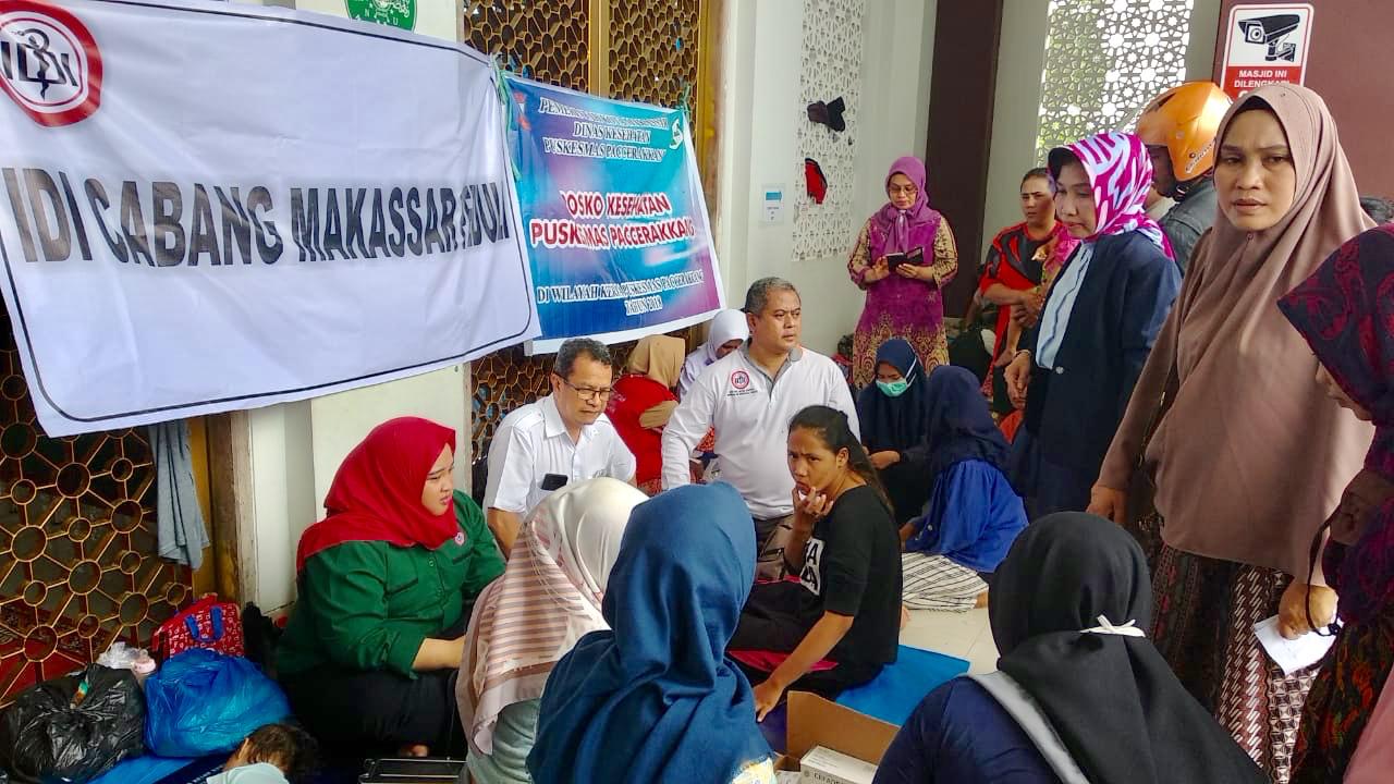 ”Selain pengobatan gratis yang laksanakan di Puskesmas Kelurahan Paccerakkang, kami juga membagikan nasi dos, susu kaleng, air mineral dan beberapa perlengkapan bayi,” ujar Ketua IDI Kota Makassar, dr Siswanto Wahab Sp.KK