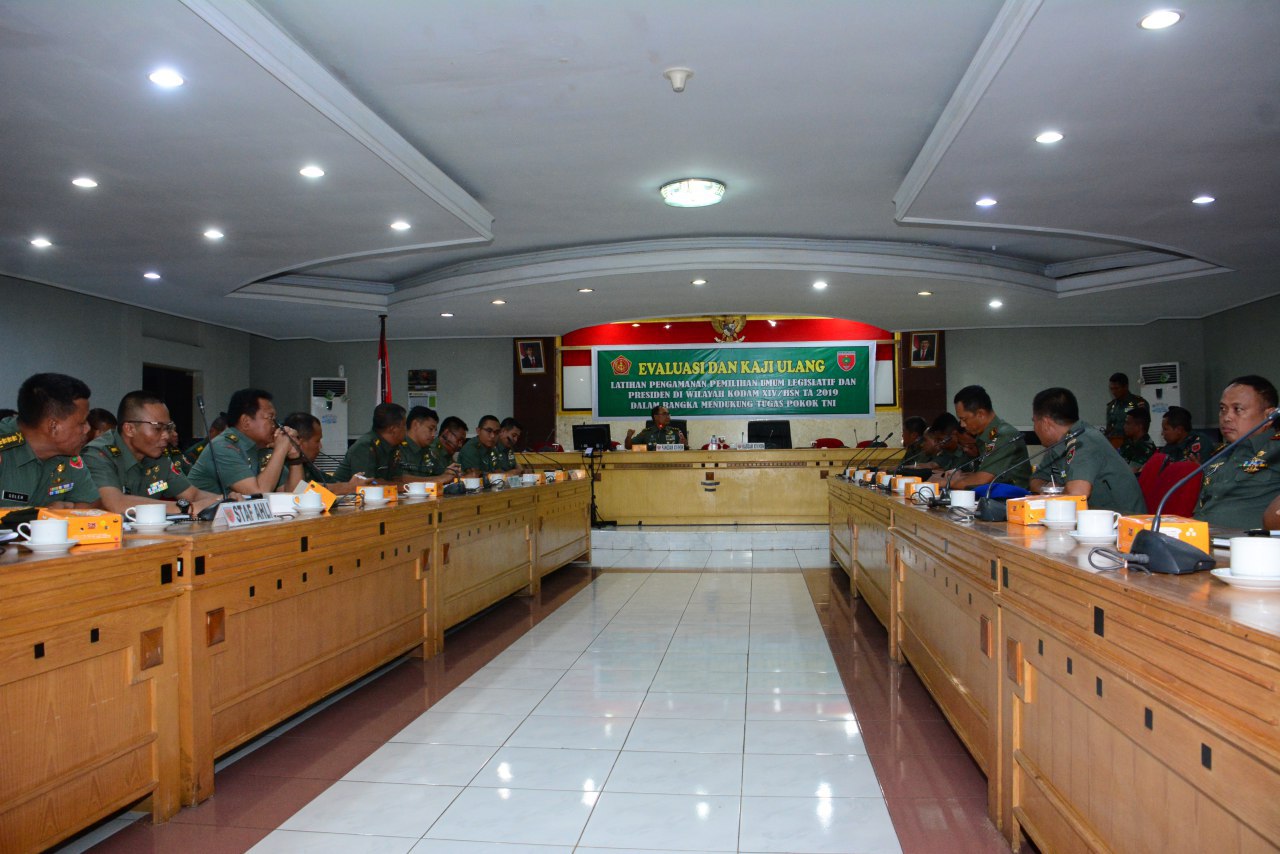 Hal tersebut, disampaikan Pangdam XIV/Hasanuddin, Mayjen TNI Surawahadi, S.Ip., M.Si, saat memimpin evaluasi dan kaji ulang latihan pengamanan Pemilu di Ruang Bina Yudha Markas Kodam (Makodam) XIV/Hasanuddin Makassar, Jum’at (8/2/2019).