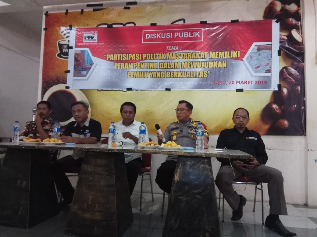 Demikian diungkapkannya, saat menjadi pembicara pada Diskusi Publik yang digelar oleh PPI Sulsel “Partisipasi Politik Masyarakat Memiliki Peran Penting Dalam Mewujudkan Pemilu yang Berkualitas” di Warkop Dottoro, Jalan Boulevard, pada Rabu (20/3/2019).