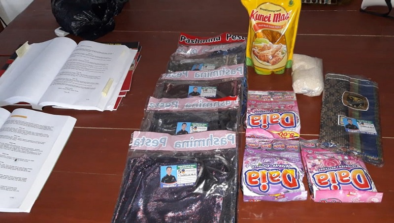 “Paket sembako yang diamankan ini berupa minyak goreng, gula pasir, sarung, hingga sachet sabun cuci. Ada pula kartu nama caleg yang tertera,”ujarnya.