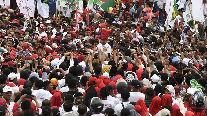 Dugaan kedua saat kampanye akbar Jokowi di Lapangan Karebosi, yang diduga melibatkan anak-anak di arena kampanye dan penggunaan fasilitas pemerintah, berupa mobil bus berplat merah. N Times / Istimewa