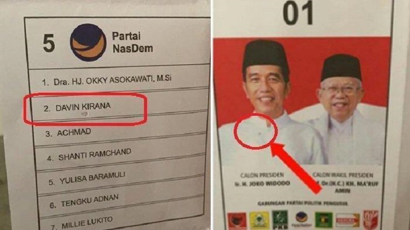 Dari pengecekan awal, ditemukan juga ada surat suara pileg yang sudah tercoblos. Surat suara pileg yang terjoblos adalah kader Nasdem nomor urut 2, Davin Kirana.