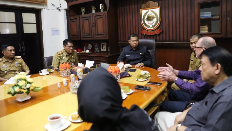 INFOSULSEL.COM, MAKASSAR—Penjabat (Pj) Walikota Makassar Iqbal Suhaeb menerima kunjungan Steven Smith, Koordinator ADB untuk wilayah Asia di ruang kerjanya, lantai dua, Balai Kota, Senin (19/8/2019).
