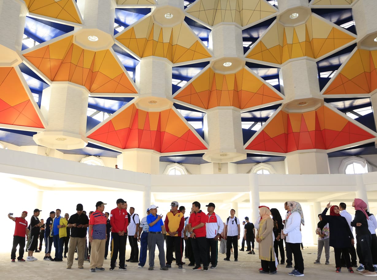 INFOSULSEL.COM, MAKASSAR,- Wakil Presiden (Wapres) Jusuf Kalla bersama Ibu Mufidah Jusuf Kalla meninjau Masjid 99 Kubah yang pembangunanya belum rampung di kawasan Center Point of Indonesia (CPI), Makassar, Sulawesi Selatan, Senin (12/8/2019) pagi.