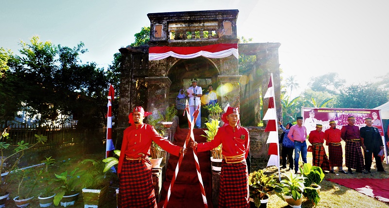 Teras rumah tua peninggalan Belanda menjadi panggung upacara. Di sana sang pemimpin upacara berdiri tegak. Di bawah tangga menuju rumah tua yang menjadi mimbar upacara, dua orang lelaki yang mengenakan pakaian adat pengawal kerajaan, berdiri tegak. Mereka mengenakan pakaian adat warna merah dengan passappu di kepala (ikat kepala) khas Bugis Makassar. Keduanya memegang bambu runcing, senjata tradisional yang digunakan rakyat Indonesia mengusir penjajah di masa lampau.