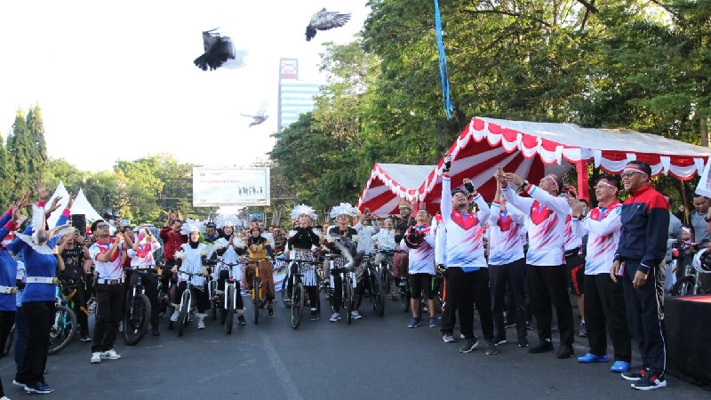 Mengangkat tema “Merajut Kesatuan dalam Kebhinekaan”, ratusan peserta sepeda santai terlihat bersepeda dengan memakai baju adat. Mulai dari baju adat Bugis, Minang, Papua, Kalimantan, dan Betawi.