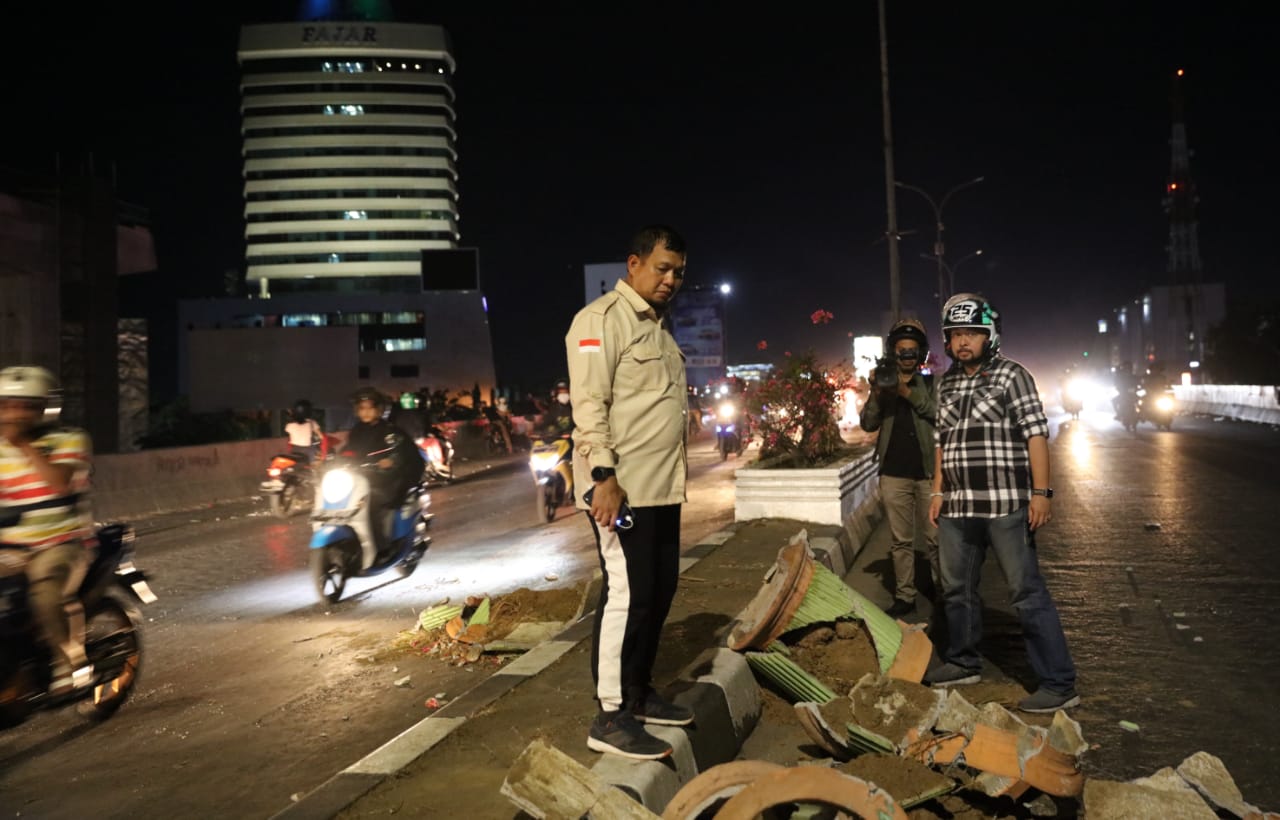 INFOSULSEL.COM, MAKASSAR,– Pj Wali Kota Makassar Iqbal Suhaeb memantau kondisi jalan di fly over pasca demonstrasi yang melibatkan ribuan mahasiswa dari berbagai perguruan tinggi negeri dan swasta di Makassar, Selasa (24/9/2019) malam.