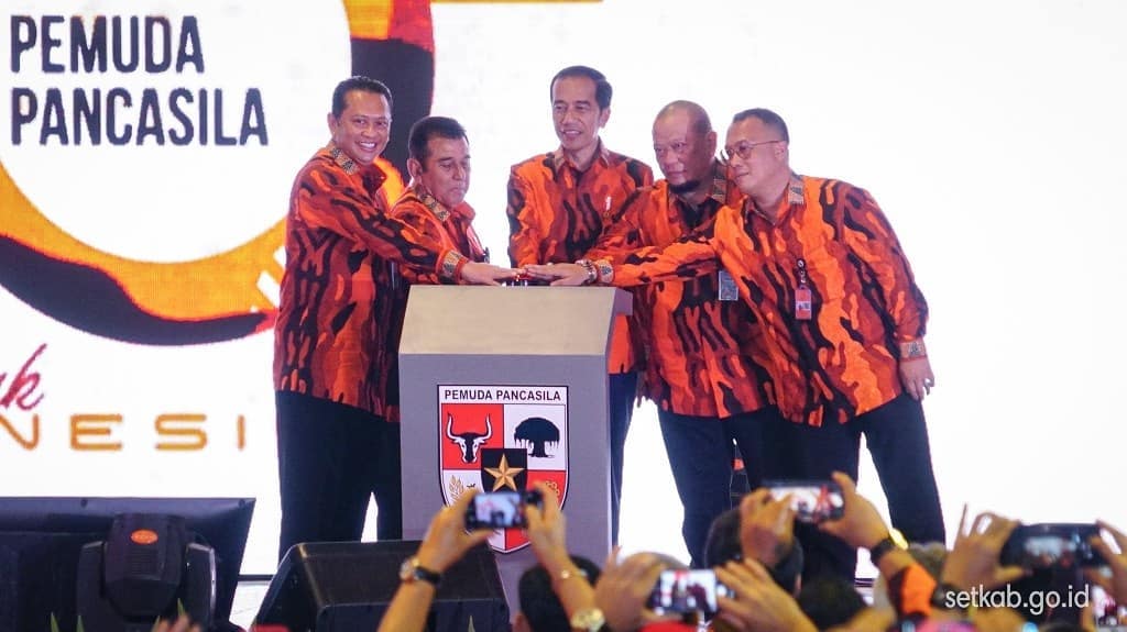 INFOSULSEL.COM, JAKARTA —Presiden Joko Widodo menghadiri pembukaan Musyawarah Besar X Pemuda Pancasila di Lagoon Garden, Hotel Sultan, Jakarta Selatan, Sabtu (26/10/2019).
